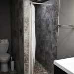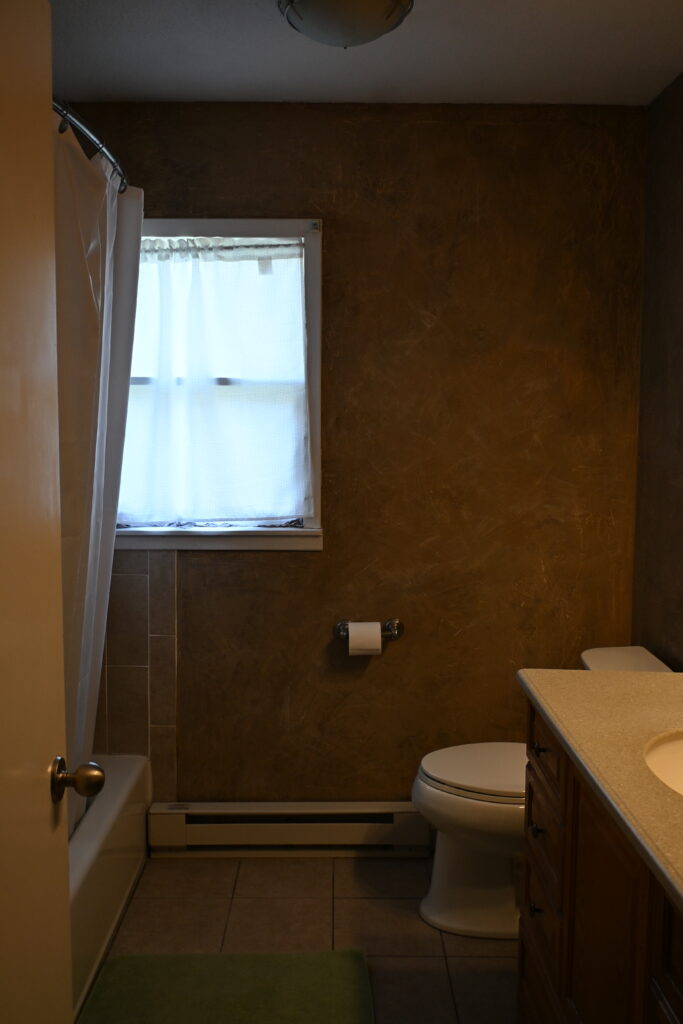 Full Bathroom: 7'6"x 7'6" tiled flooring, storage