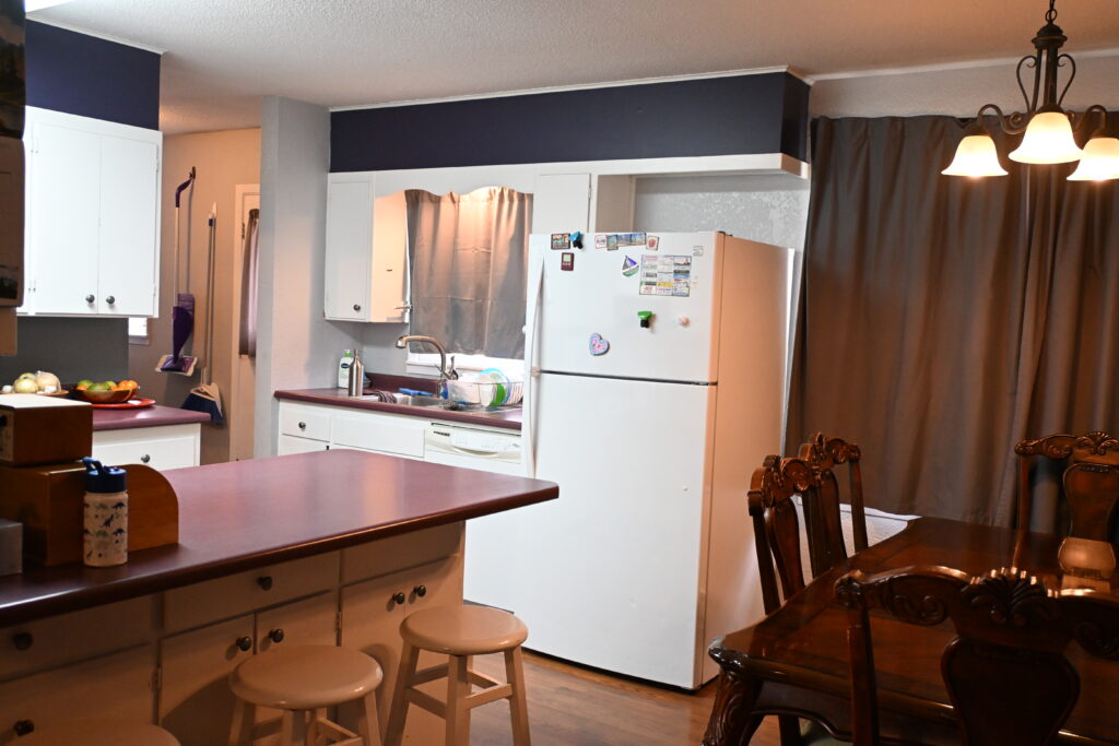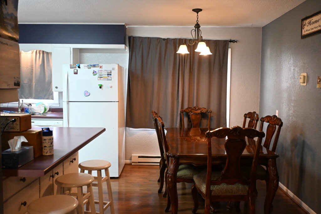 Kitchen & Dining Area: 12'x 16' wood laminate flooring, Estate electric range, breakfast bar with stools, Whirlpool range hood, Whirlpool dishwasher, Kenmore refrigerator