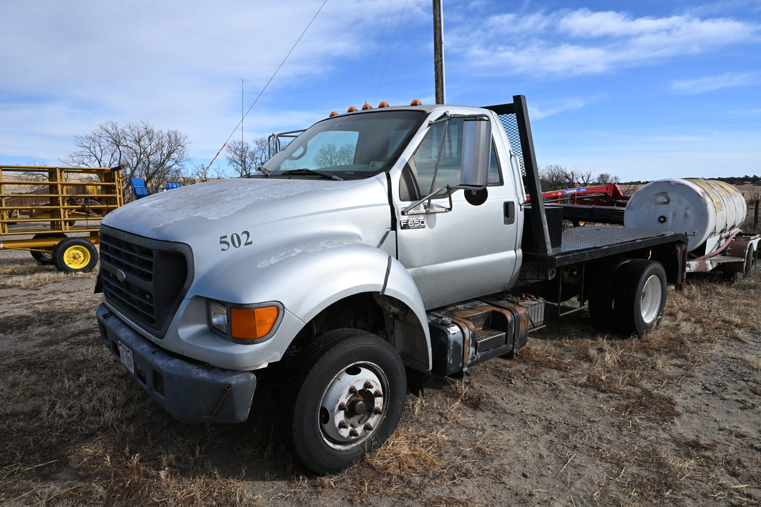 Vehicles: 1978 Ford F250 4wd Camper Special Ford 460 gas motor 147K miles long box auto new alum rims & hunky tires complete suspension update, 85K miles, very clean VIN#X26SKEE5908. 2000 Ford F650 Super Duty auto Cummins dually wet kit flatbed fifth wheel ball small 5th wheel plate winch & tree spade controls. Military 10-wheel drive truck tractor, wet kit runs 30 gpm, ex rubber auto trans. Late model Ford brush guard.