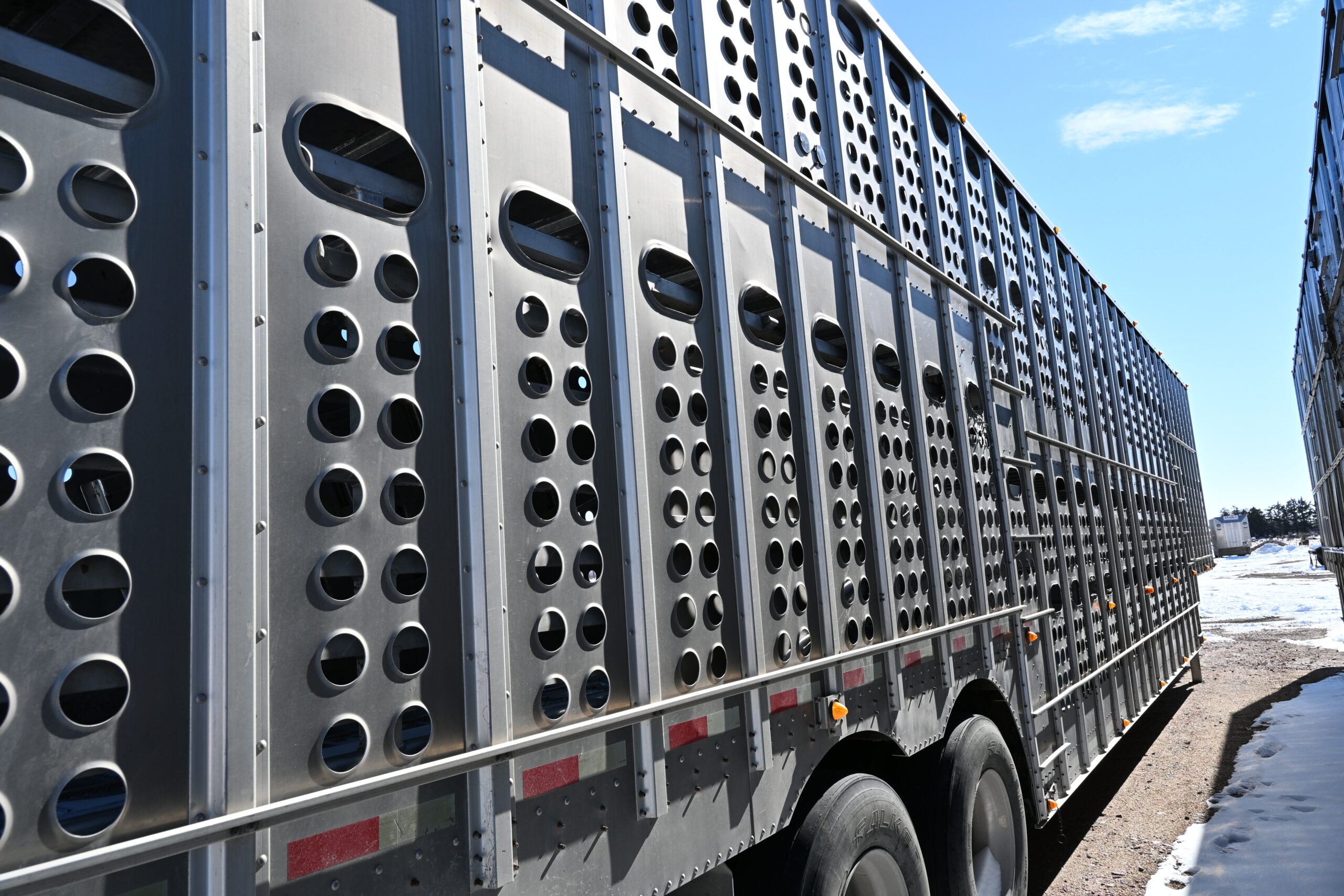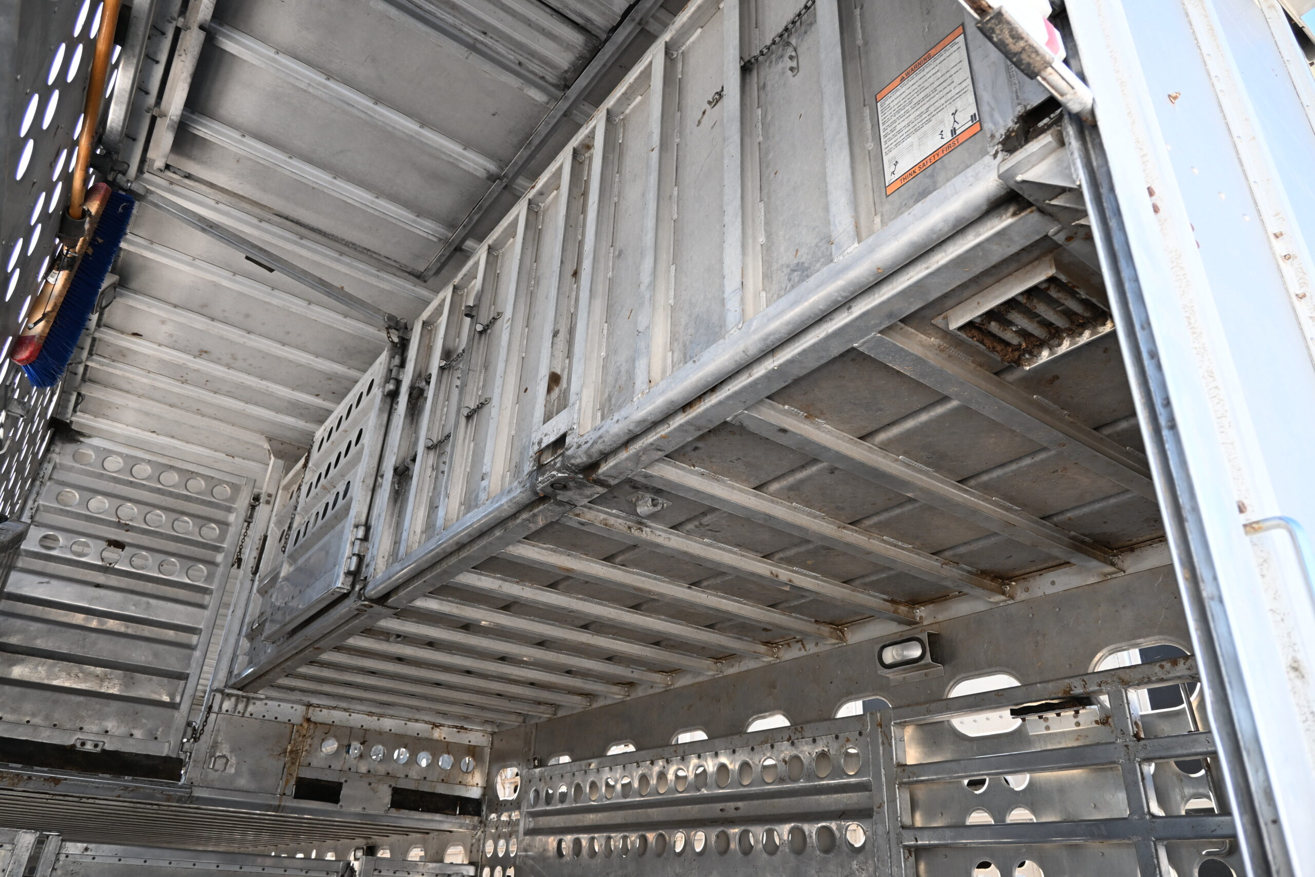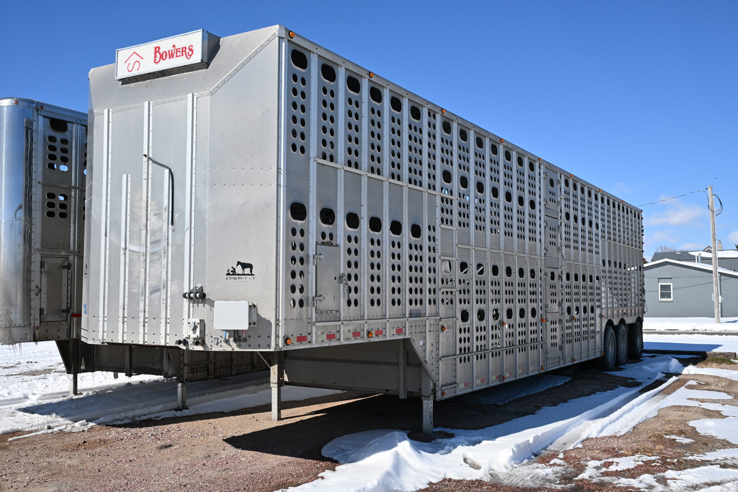 Hay/Livestock/Flatbed Trailers: Industrias American gooseneck bale hauler Model 20X42 2 row tandem duals no title. 12 bale 32’ chain heavy duty gooseneck bale hauler. 2012 50’ Merritt livestock trailer 2 duals 1 tag axles upper doghouse in back double deck front with ramps #MT2N5330CH022394.32’ metal stock rack slides up on a 32’ gooseneck trailer. Trailmann 31’ gooseneck no top livestock trailer 3-7K axles #1M9LA3039K1328162. 2001 Trailmann Saratoga 2 horse slant bumper hitch w/ saddle compartment #1M9MA251152440. 30' TrailMax TD42T hd tilt trailer air brakes. 20' gooseneck utility trailer.
