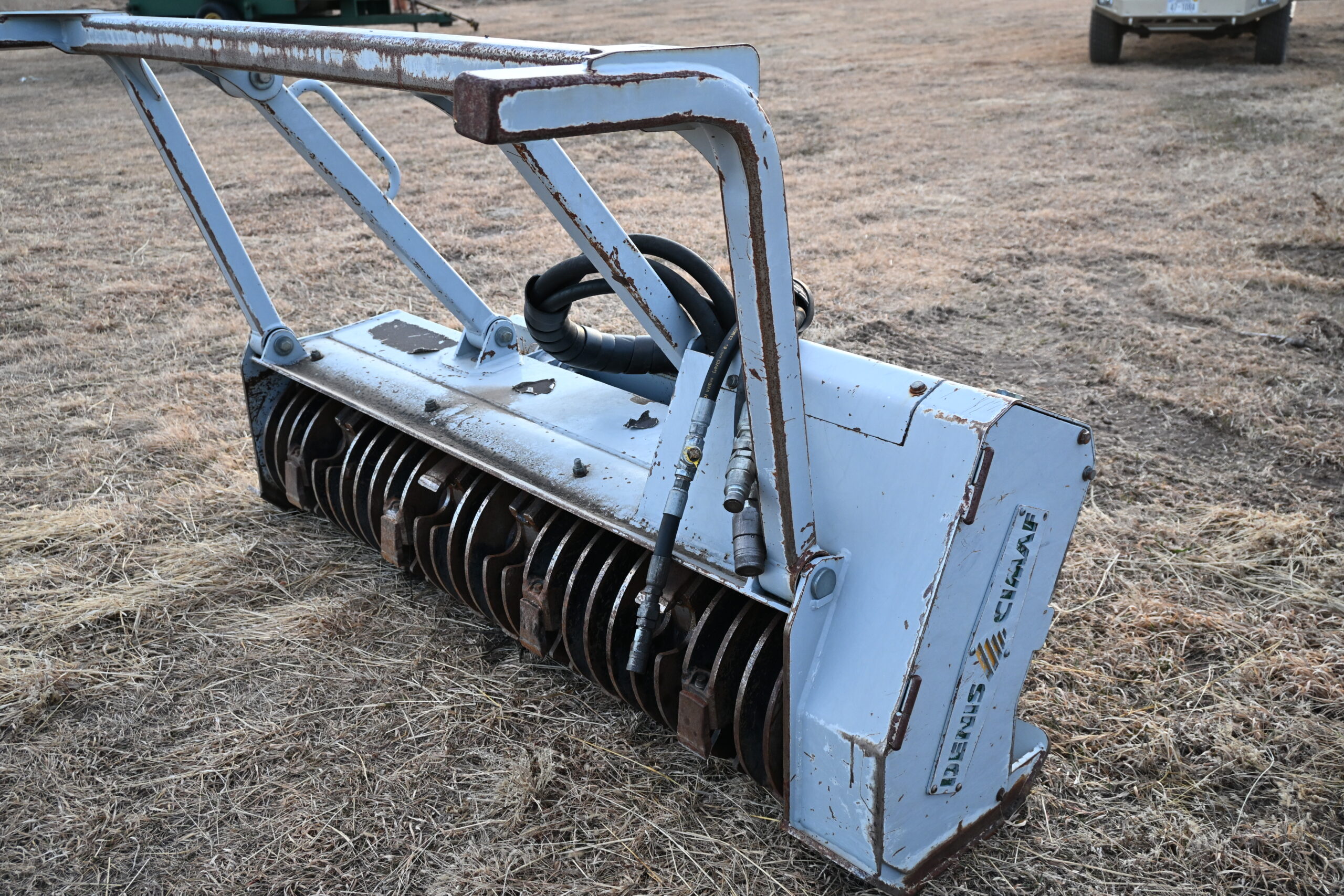 Forestry Equipment: Vermeer 42” four spade tree mover. Denis Kimaf rotary drum style mulching head for skid loader. KR Swerdfeger heavy duty winch & gas motor. Feller Buncher rotary cutter & tree shear. Tree shear that attaches to a 4-wheeler.