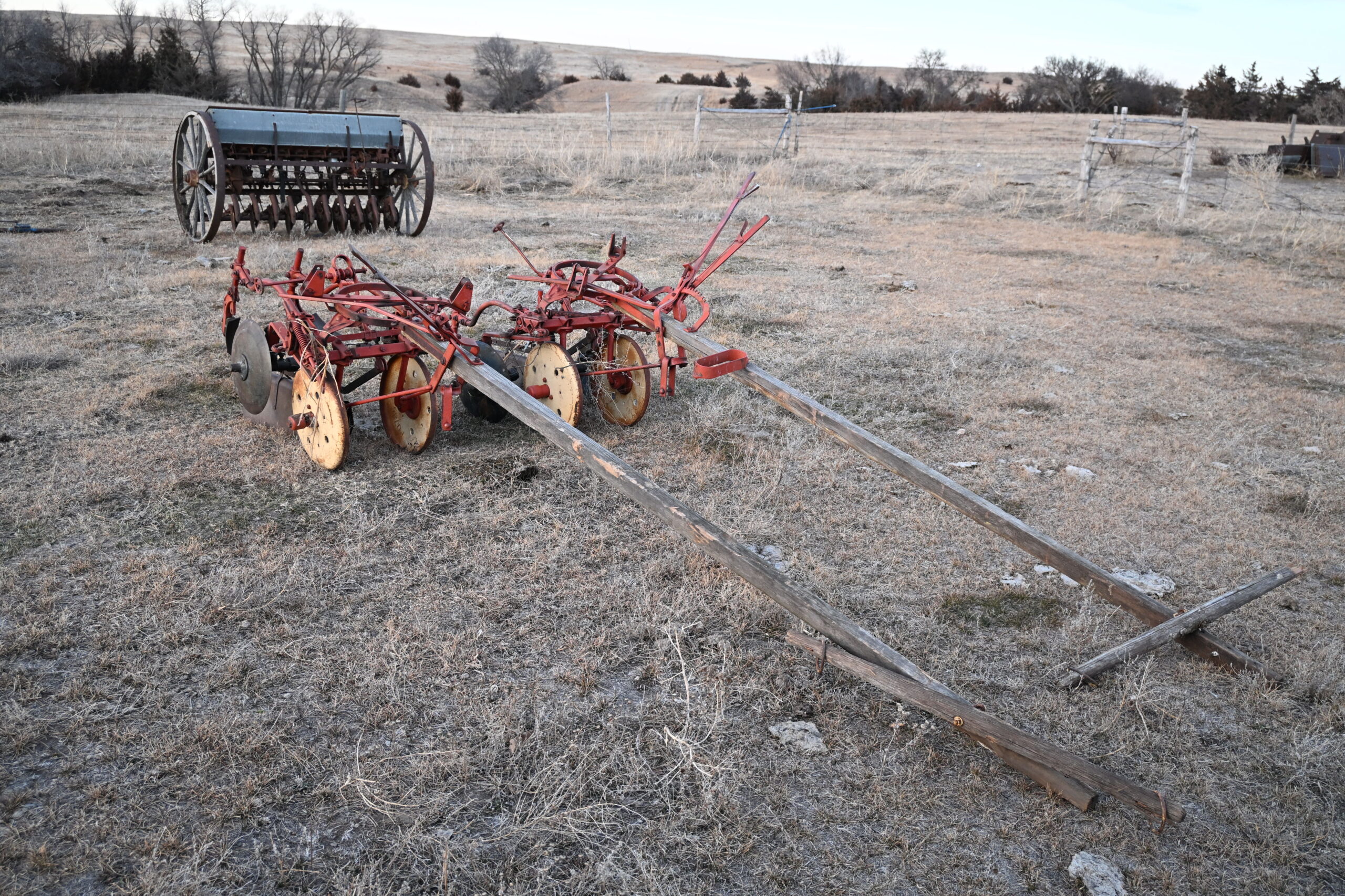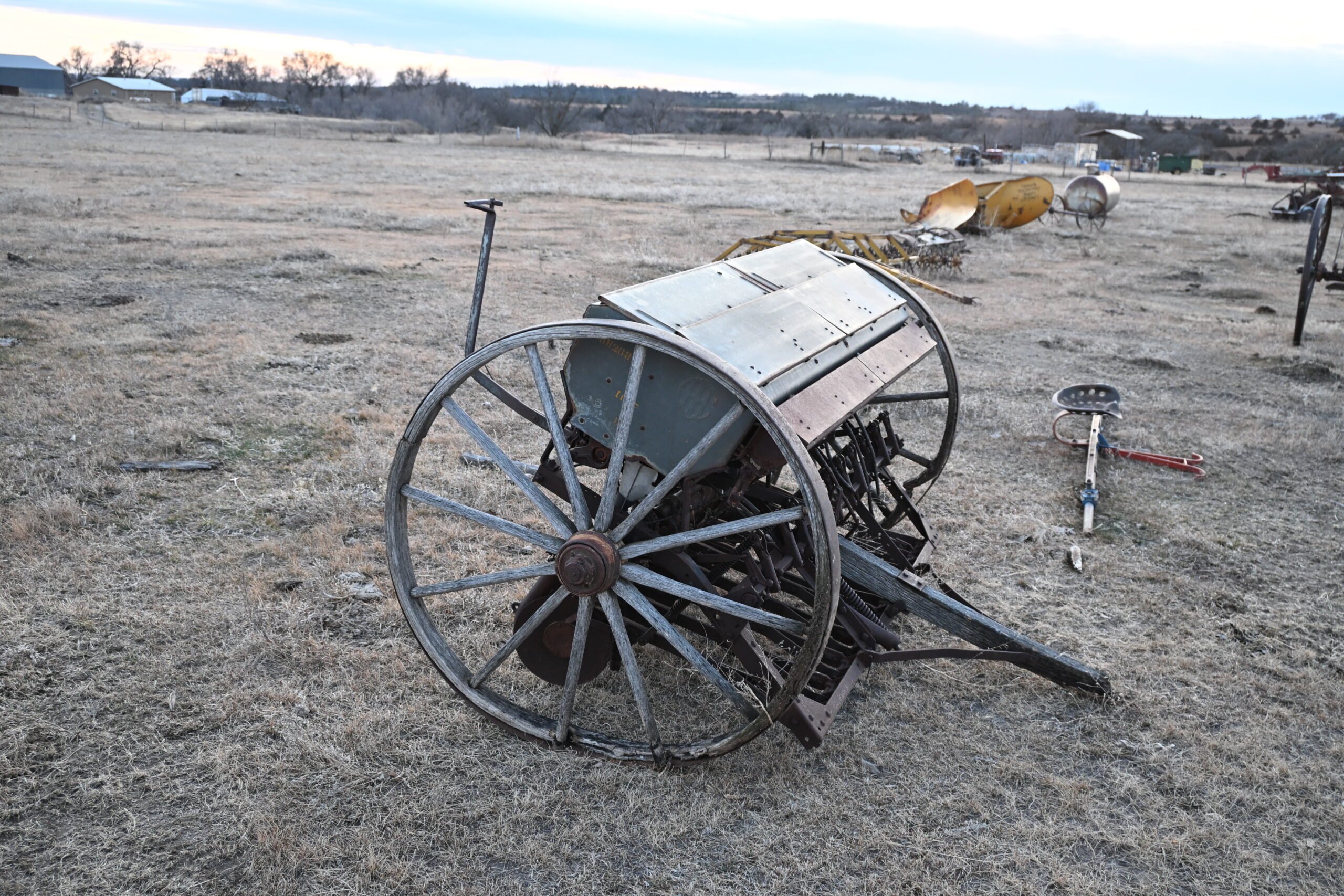 Misc.: Husqvarna Z560 27hp Kohler EFI. John Deere LA175. 2,000 gallon fuel barrel 12V pump & hose reel. 8’wide x 9’ tall x 12’ long walk-in cooler. Cedar planks and 2x6 boards. 250- Juniper line posts. 90-4” top treated line posts. 30-steel T-posts. Oilers. Dust bags. Mineral feeders. 2-8’ auto gates. Gopher machine. New horse drawn Case 2r go-dig. Good truck tire road drag all chain tied. 2-12’ & 1-11’ Industrial tire tanks. 3-Aeromotor wheel heads & tails. 5 section John Deere harrow. Antique horse drawn equipment. Miller welder. Wacker Neuson HI 200 diesel heater.
