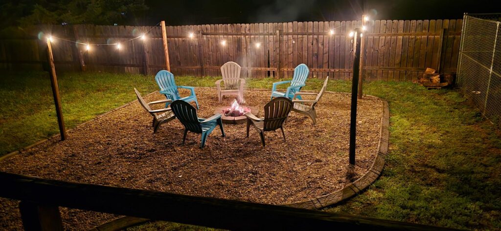 Backyard: has privacy fence, fire pit, well, hydrant, dog pen